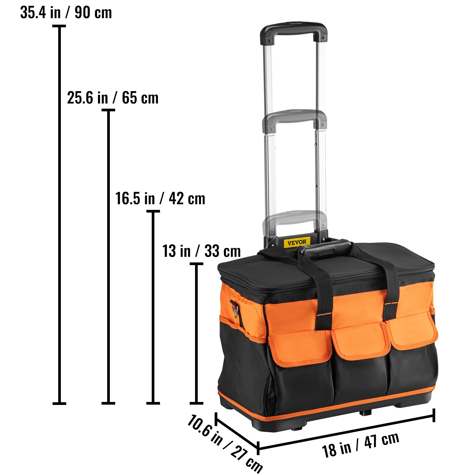 Vevorbrand Rolling Tool Bag 18 Tool Bag With Two 2 56 Wheels 17 Pockets 110 Lb Load Capacity Rolling Tool Bag Roller Tool Box Rolling Tote W Telescoping Handle Walmart Com